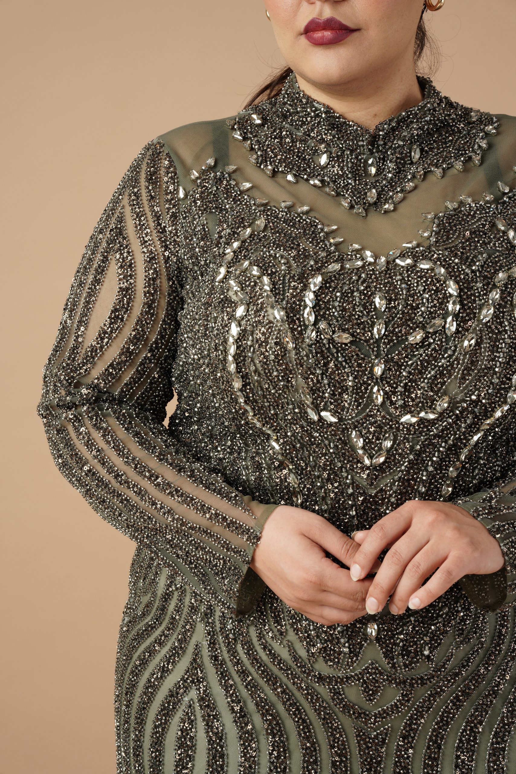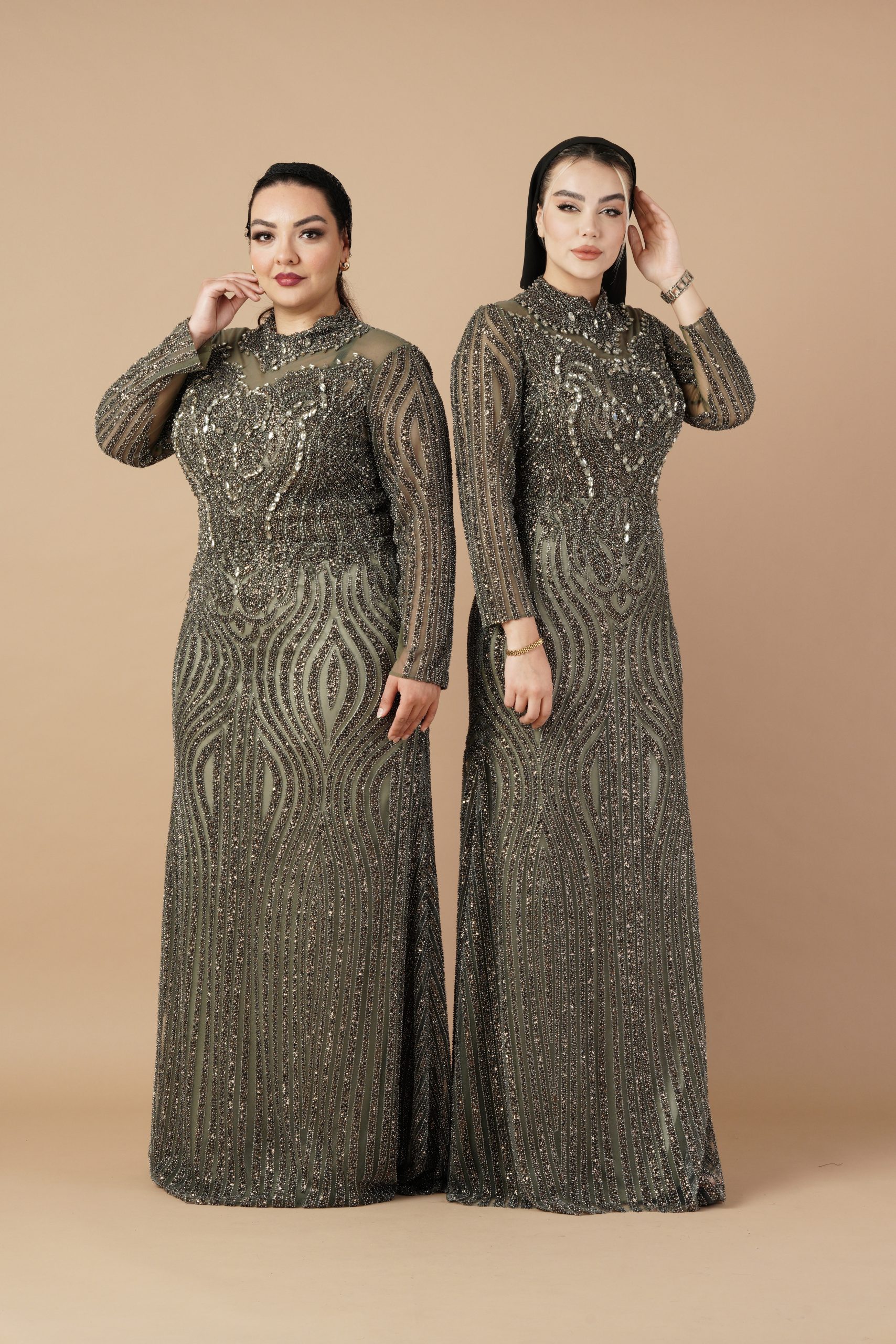 پیراهن عربی کارشده نمونهای خیرهکننده از طراحی مجلل و هماهنگ است که با دقت بالا در جزئیات و فرم اجرا شده.
