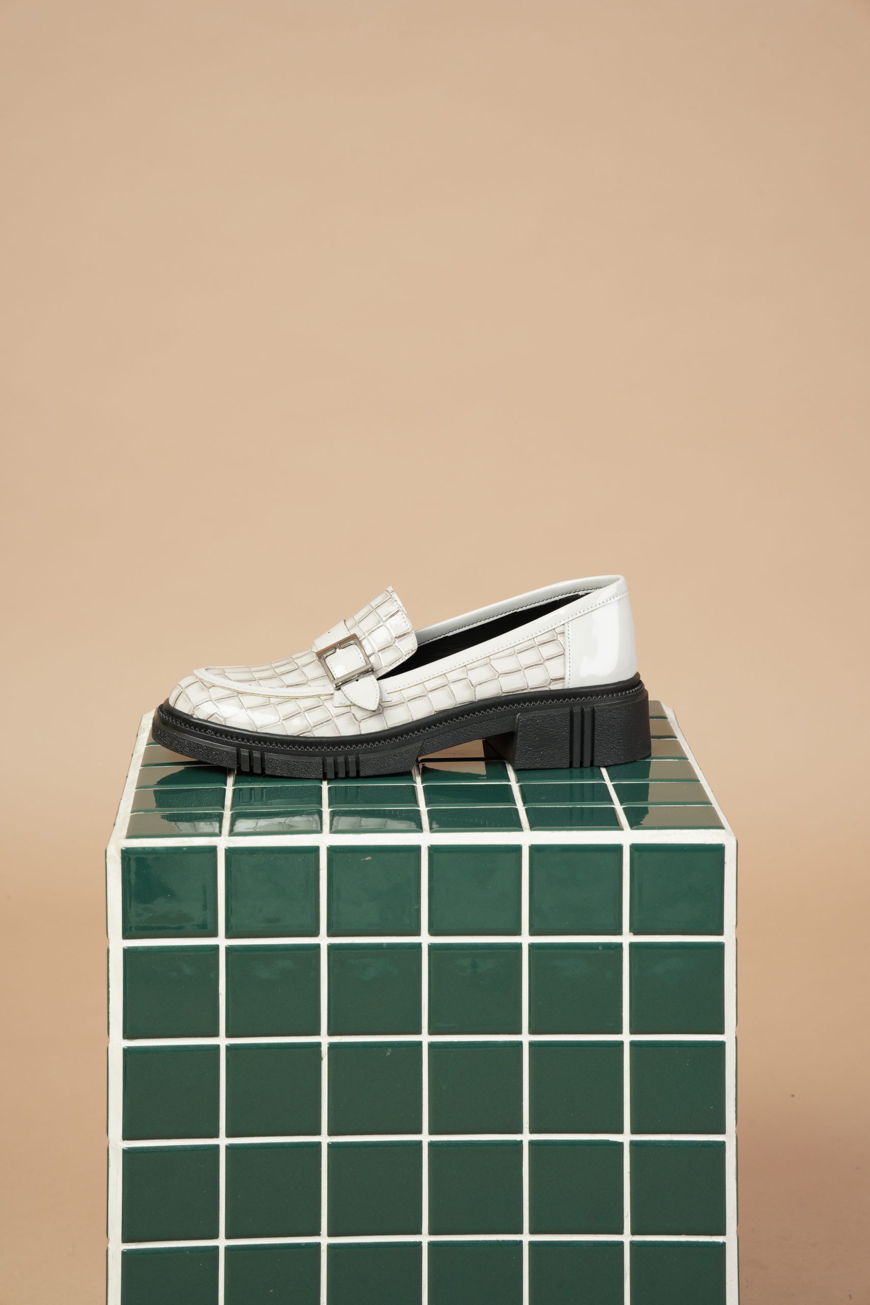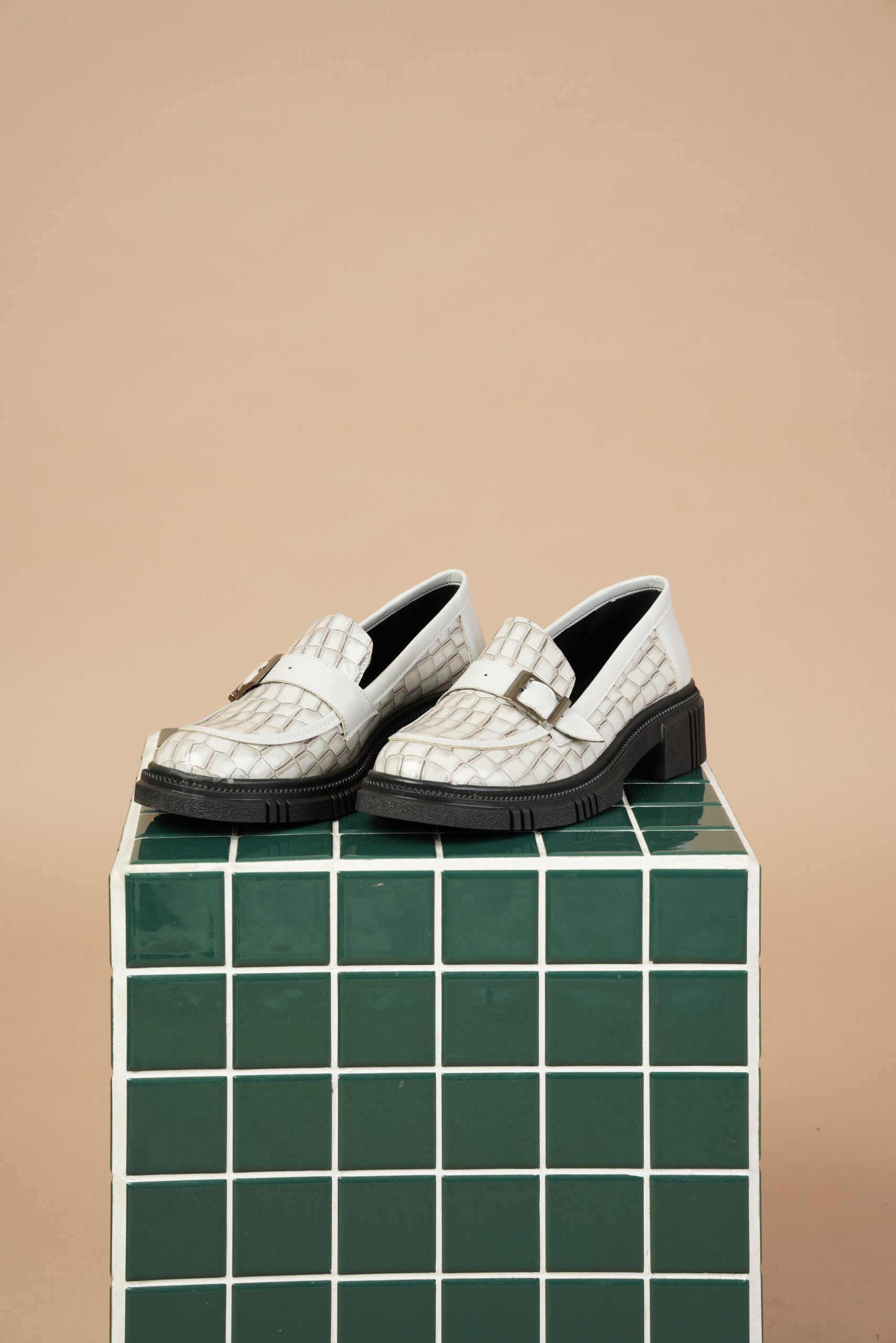 این یک جفت لوفر سفید با طرح شطرنجی ظریف است که طراحی‌اش هم کلاسیک است و هم مدرن.