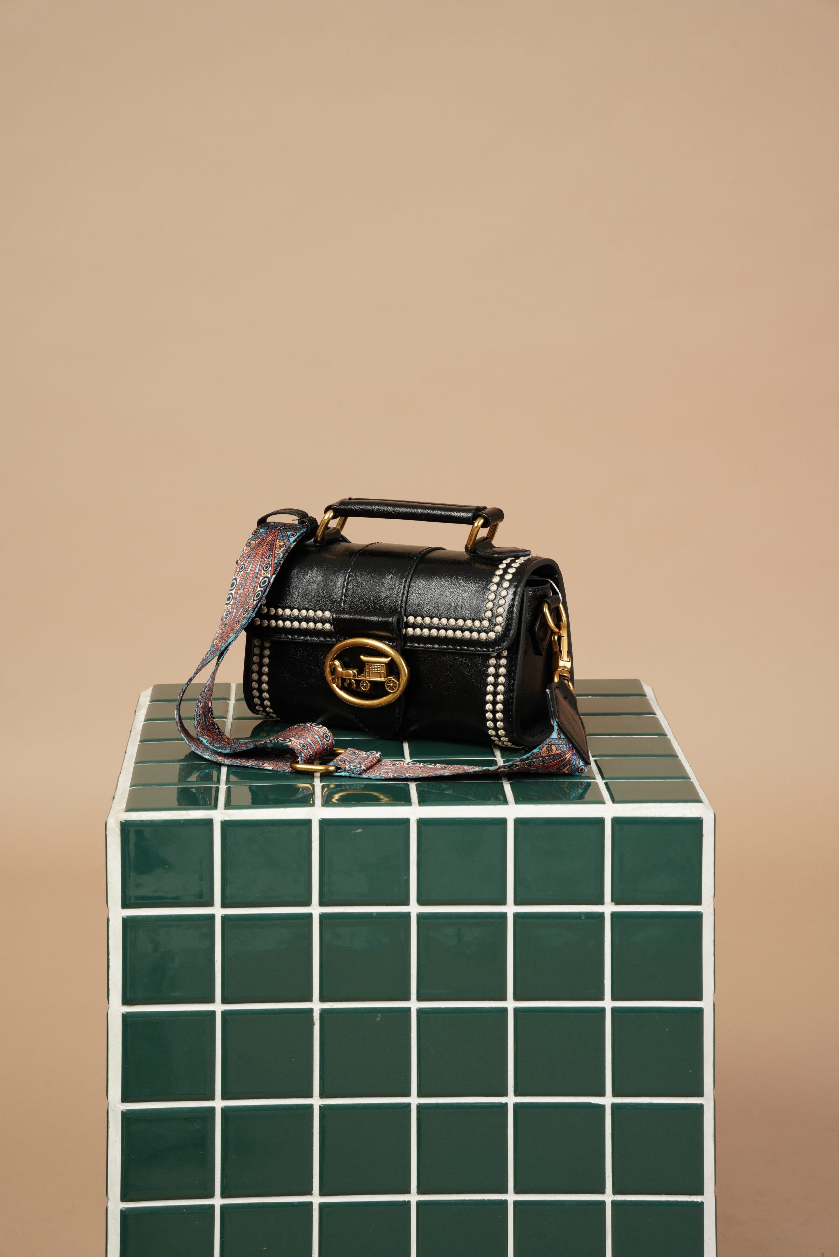 این کیف دستی چرمی، تجسمی از ظرافت مینیمالیستی با جزئیاتی است که بی‌صدا فریاد لوکس بودن می‌زنند. جنس آن از چرم طبیعی با بافتی لطیف و نیمه‌مات است که در نور، درخشش ملایمی دارد. دوخت سفید تمیز و دقیق در لبه‌ها، تضادی هنرمندانه با رنگ مشکی کیف ایجاد کرده و حس معماری ظریف را القا می‌کند. قفل طلایی دایره‌ای با نماد تزئینی، نقطه‌ی تمرکز بصری کیف است—هم کاربردی، هم زیبا. بند بافته‌شده‌ی رنگی با طرح‌های قرمز، آبی و سفید، روحی هنری و معاصر به طراحی کلاسیک کیف بخشیده و آن را از حالت رسمی صرف خارج کرده است.