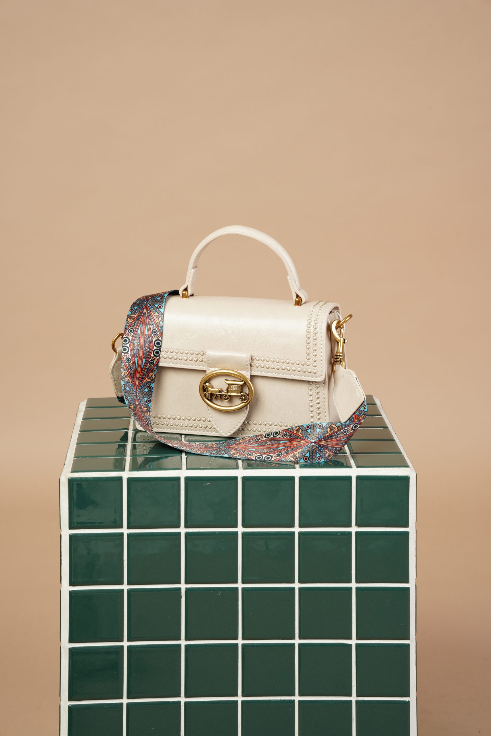 نسخه‌ی کرم‌رنگ این کیف، لطافت و گرمای بیشتری دارد و برای ست‌های روشن‌تر و روزانه، انتخابی بی‌نقص است. رنگ کرم با دوخت سفید، جلوه‌ای یک‌دست و آرامش‌بخش دارد که به راحتی با آیتم‌های زیر ست می‌شود: